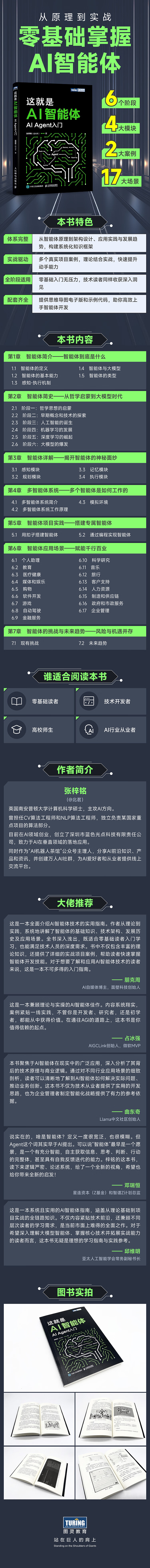 总体评价:本书聚焦于当前人工智能领域的热点方向——AI智能体(AI Agent),系统性地介绍了其核心概念、技术架构与开发实践。内容涵盖从大语言模型(LLM)基础到智能体设计模式,结合主流开发框架(如LangChain)和工具,详细讲解了如何构建、优化和部署能够自主理解、规划与执行任务的智能体系统。书中包含丰富的实战案例和代码示例,旨在帮助读者掌握AI Agent的开发全流程,并将其应用于自动化、人机交互、智能决策等实际场景。